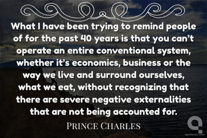 What I have been trying to remind people of for the past 40 years is that you can’t operate an entire conventional system, whether it’s economics, business or the way we live and surround ourselves, what we eat, without recognizing that there are severe negative externalities that are not being accounted for.