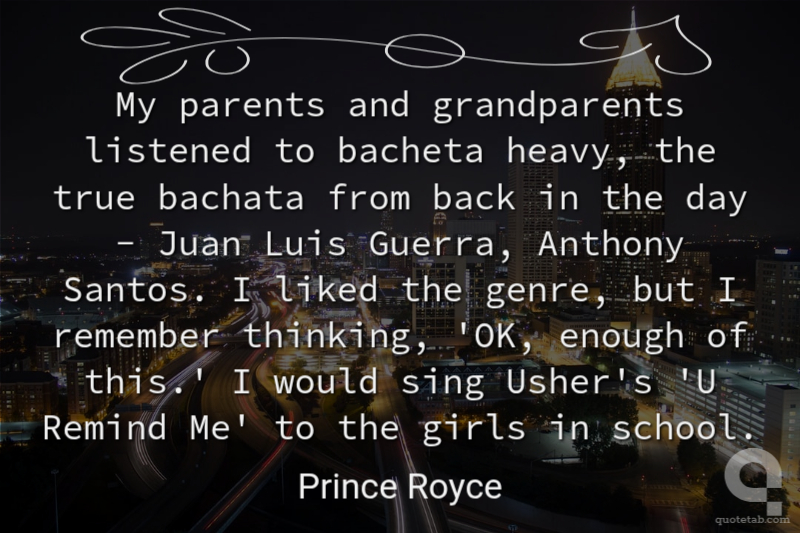 My parents and grandparents listened to bacheta heavy, the true bachata from back in the day - Juan Luis Guerra, Anthony Santos. I liked the genre, but I remember thinking, 'OK, enough of this.' I would sing Usher's 'U Remind Me' to the girls in school.