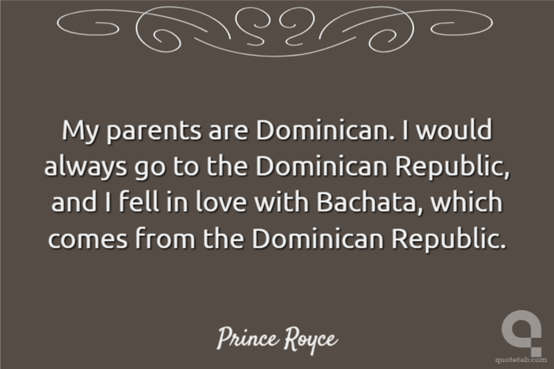 My parents are Dominican. I would always go to the Dominican Republic, and I fell in love with Bachata, which comes from the Dominican Republic.