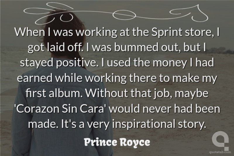 When I was working at the Sprint store, I got laid off. I was bummed out, but I stayed positive. I used the money I had earned while working there to make my first album. Without that job, maybe 'Corazon Sin Cara' would never had been made. It's a very inspirational story.
