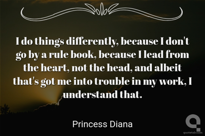 I do things differently, because I don't go by a rule book, because I lead from the heart, not the head, and albeit that's got me into trouble in my work, I understand that.