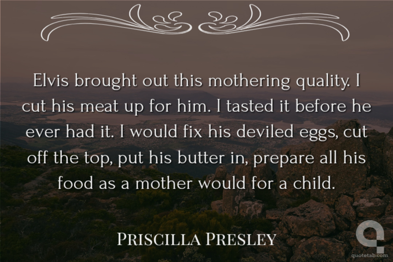 Elvis brought out this mothering quality. I cut his meat up for him. I tasted it before he ever had it. I would fix his deviled eggs, cut off the top, put his butter in, prepare all his food as a mother would for a child.