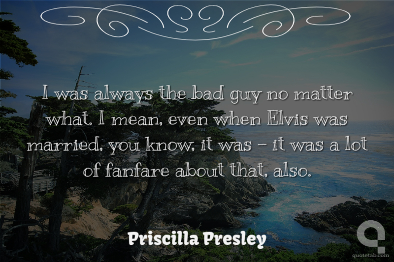 I was always the bad guy no matter what. I mean, even when Elvis was married, you know, it was - it was a lot of fanfare about that, also.