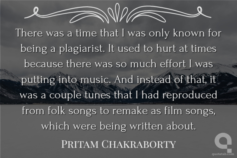 There was a time that I was only known for being a plagiarist. It used to hurt at times because there was so much effort I was putting into music. And instead of that, it was a couple tunes that I had reproduced from folk songs to remake as film songs, which were being written about.