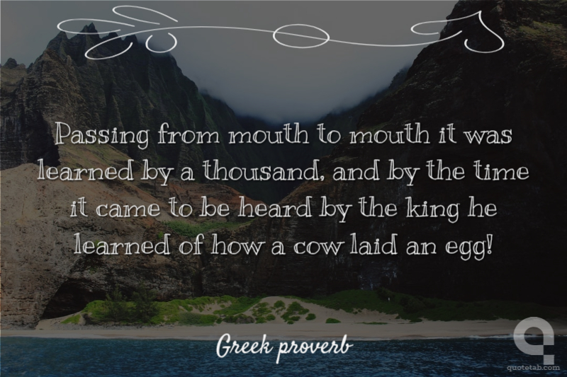 Passing from mouth to mouth it was learned by a thousand, and by the time it came to be heard by the king he learned of how a cow laid an egg!