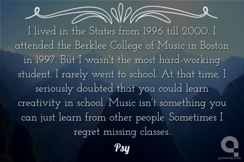 I lived in the States from 1996 till 2000. I attended the Berklee College of Music in Boston in 1997. But I wasn't the most hard-working student. I rarely went to school. At that time, I seriously doubted that you could learn creativity in school. Music isn't something you can just learn from other people. Sometimes I regret missing classes.