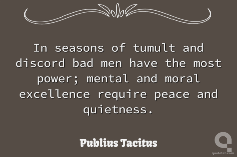 In seasons of tumult and discord bad men have the most power; mental and moral excellence require peace and quietness.
