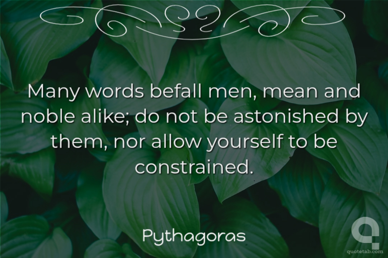 Many words befall men, mean and noble alike; do not be astonished by them, nor allow yourself to be constrained.
