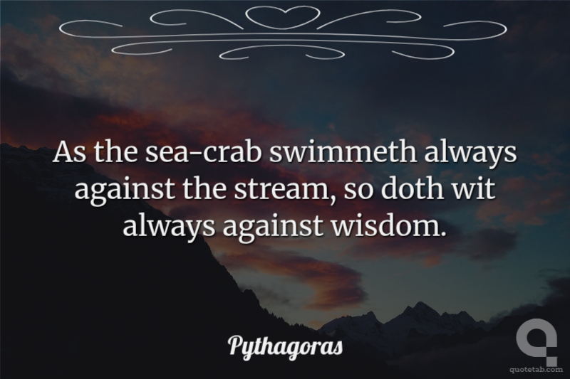 As the sea-crab swimmeth always against the stream, so doth wit always against wisdom.