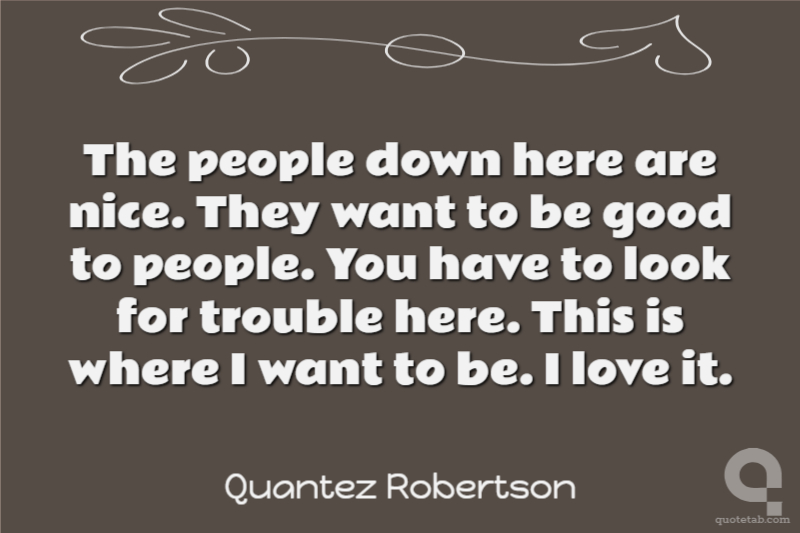 The people down here are nice. They want to be good to people. You have to look for trouble here. This is where I want to be. I love it.