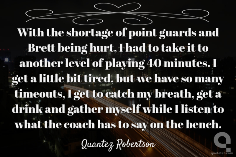With the shortage of point guards and Brett being hurt, I had to take it to another level of playing 40 minutes. I get a little bit tired, but we have so many timeouts, I get to catch my breath, get a drink and gather myself while I listen to what the coach has to say on the bench.