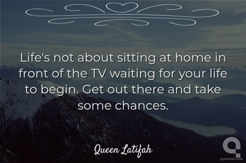 Life's not about sitting at home in front of the TV waiting for your life to begin. Get out there and take some chances.