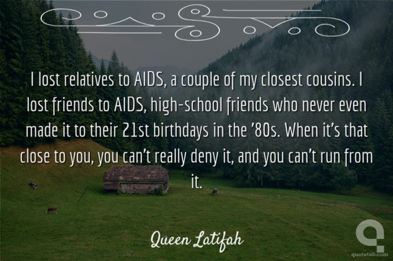 I lost relatives to AIDS, a couple of my closest cousins. I lost friends to AIDS, high-school friends who never even made it to their 21st birthdays in the '80s. When it's that close to you, you can't really deny it, and you can't run from it.