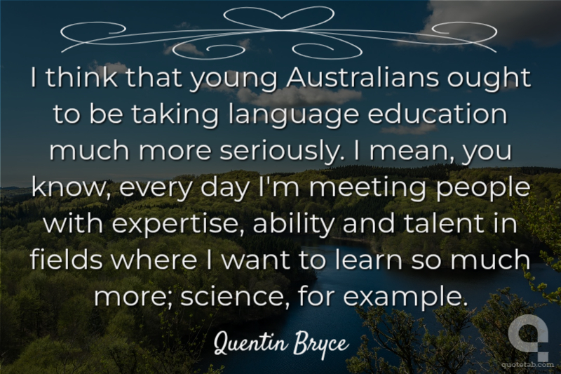 I think that young Australians ought to be taking language education much more seriously. I mean, you know, every day I'm meeting people with expertise, ability and talent in fields where I want to learn so much more; science, for example.