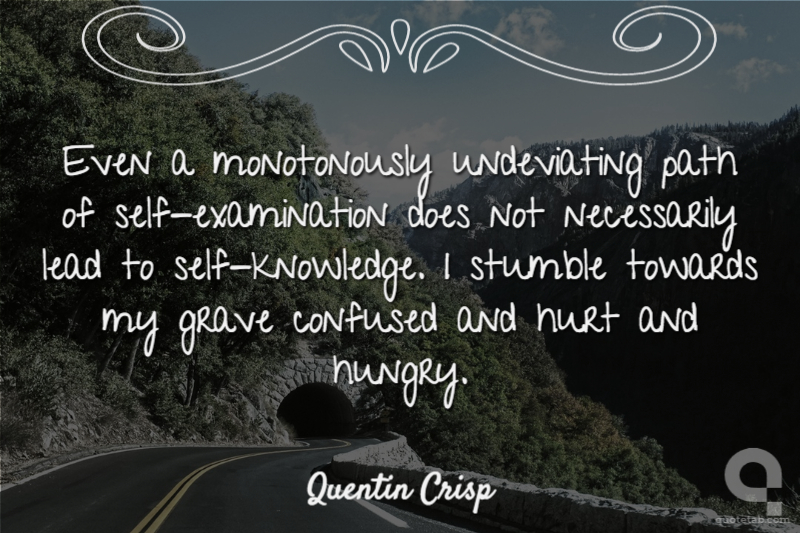 Even a monotonously undeviating path of self-examination does not necessarily lead to self-knowledge. I stumble towards my grave confused and hurt and hungry.