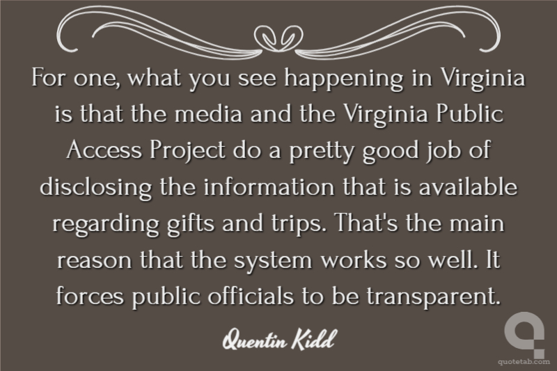 For one, what you see happening in Virginia is that the media and the Virginia Public Access Project do a pretty good job of disclosing the information that is available regarding gifts and trips. That's the main reason that the system works so well. It forces public officials to be transparent.