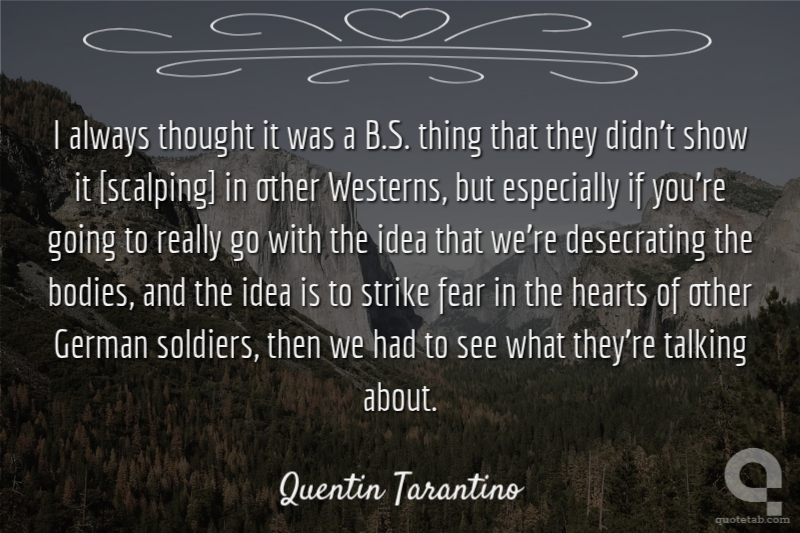 I always thought it was a B.S. thing that they didn't show it [scalping] in other Westerns, but especially if you're going to really go with the idea that we're desecrating the bodies, and the idea is to strike fear in the hearts of other German soldiers, then we had to see what they're talking about.