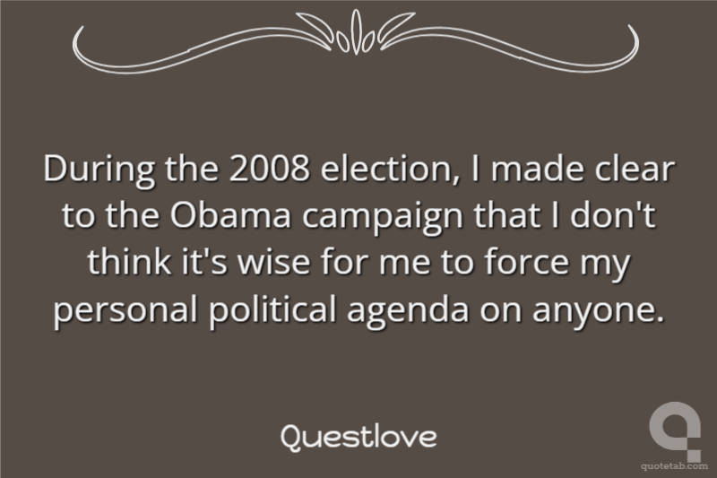During the 2008 election, I made clear to the Obama campaign that I don't think it's wise for me to force my personal political agenda on anyone.