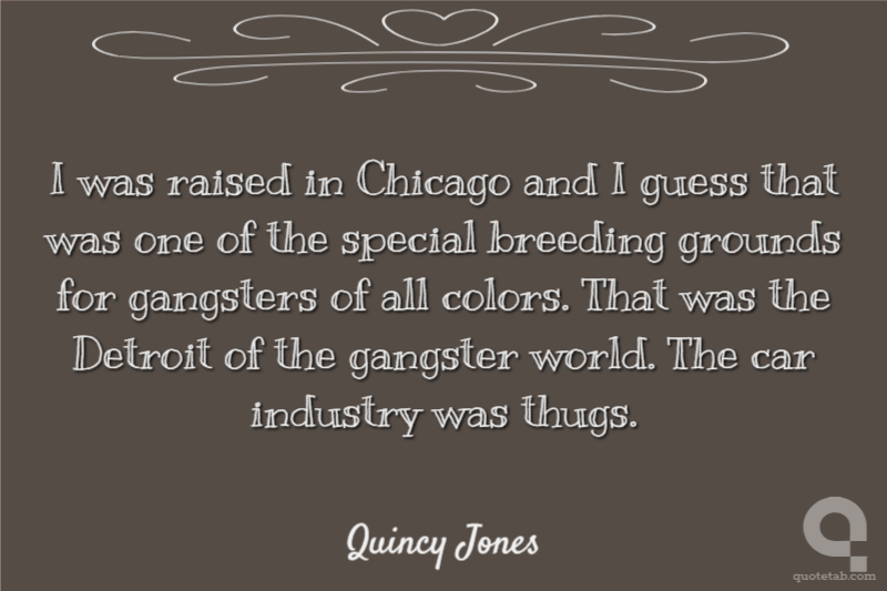 I was raised in Chicago and I guess that was one of the special breeding grounds for gangsters of all colors. That was the Detroit of the gangster world. The car industry was thugs.