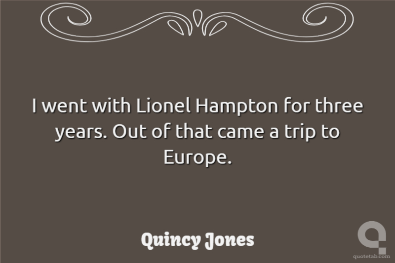 I went with Lionel Hampton for three years. Out of that came a trip to Europe.