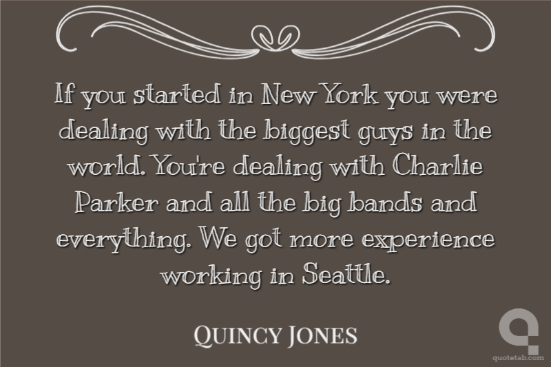 If you started in New York you were dealing with the biggest guys in the world. You're dealing with Charlie Parker and all the big bands and everything. We got more experience working in Seattle.