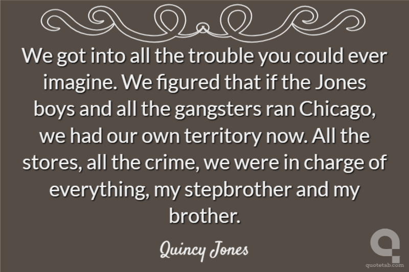 We got into all the trouble you could ever imagine. We figured that if the Jones boys and all the gangsters ran Chicago, we had our own territory now. All the stores, all the crime, we were in charge of everything, my stepbrother and my brother.