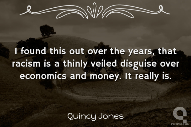 I found this out over the years, that racism is a thinly veiled disguise over economics and money. It really is.