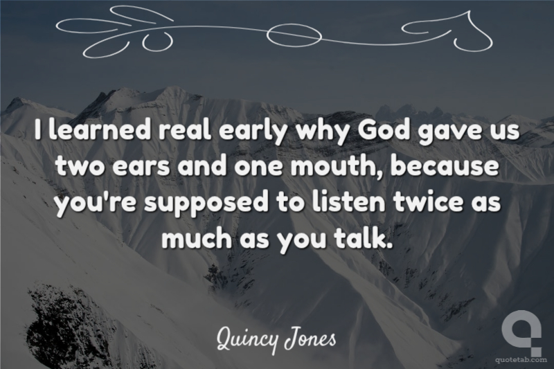 I learned real early why God gave us two ears and one mouth, because you're supposed to listen twice as much as you talk.