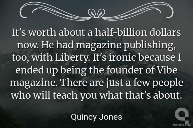 It's worth about a half-billion dollars now. He had magazine publishing, too, with Liberty. It's ironic because I ended up being the founder of Vibe magazine. There are just a few people who will teach you what that's about.