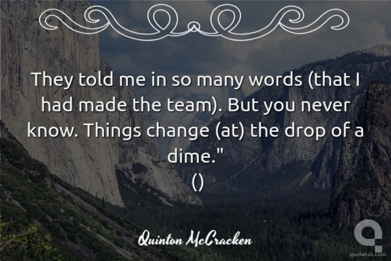 They told me in so many words (that I had made the team). But you never know. Things change (at) the drop of a dime." ()