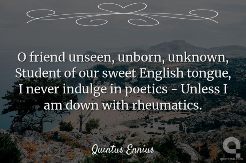 O friend unseen, unborn, unknown, Student of our sweet English tongue, I never indulge in poetics - Unless I am down with rheumatics.