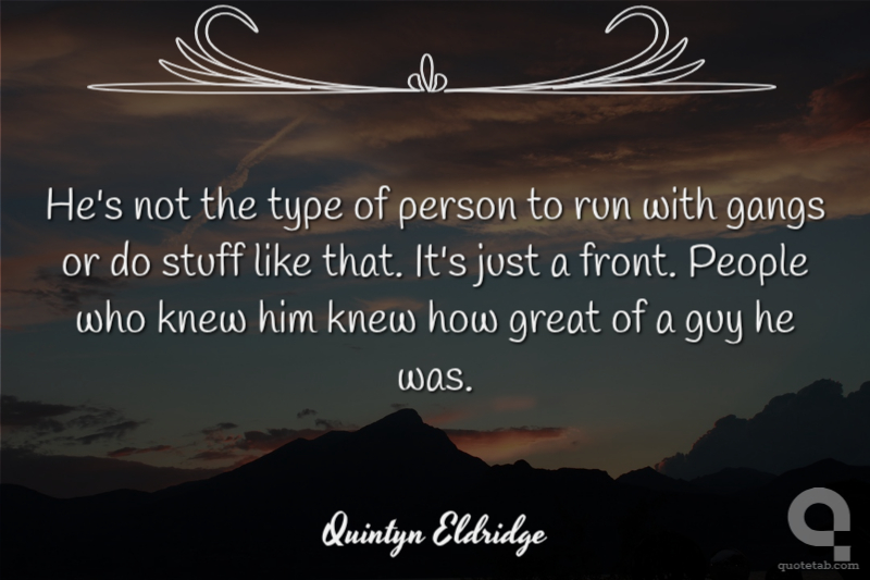 He's not the type of person to run with gangs or do stuff like that. It's just a front. People who knew him knew how great of a guy he was.