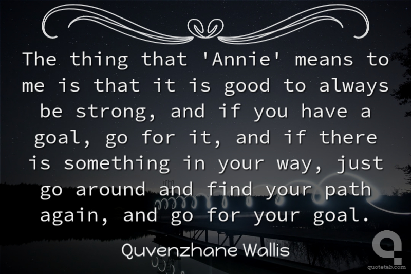 The thing that 'Annie' means to me is that it is good to always be strong, and if you have a goal, go for it, and if there is something in your way, just go around and find your path again, and go for your goal.