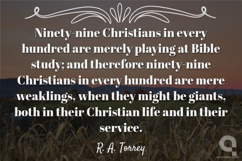 Ninety-nine Christians in every hundred are merely playing at Bible study; and therefore ninety-nine Christians in every hundred are mere weaklings, when they might be giants, both in their Christian life and in their service.