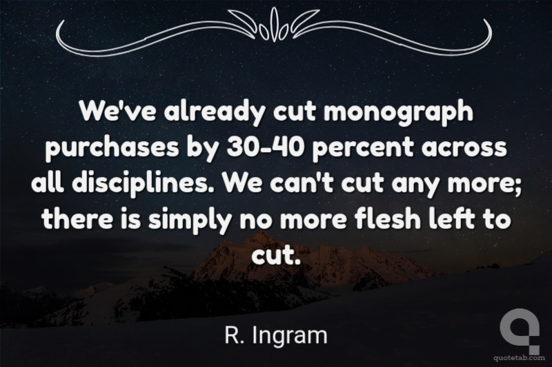 We've already cut monograph purchases by 30-40 percent across all disciplines. We can't cut any more; there is simply no more flesh left to cut.