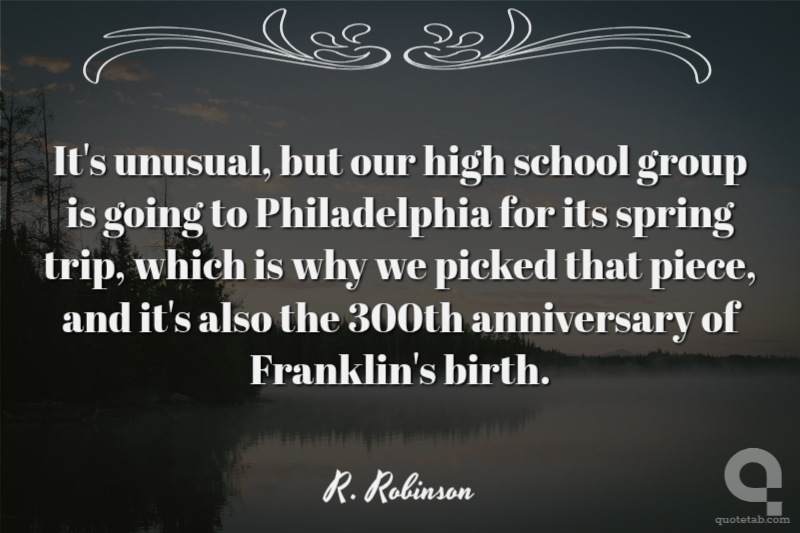 It's unusual, but our high school group is going to Philadelphia for its spring trip, which is why we picked that piece, and it's also the 300th anniversary of Franklin's birth.