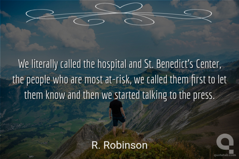 We literally called the hospital and St. Benedict's Center, the people who are most at-risk, we called them first to let them know and then we started talking to the press.