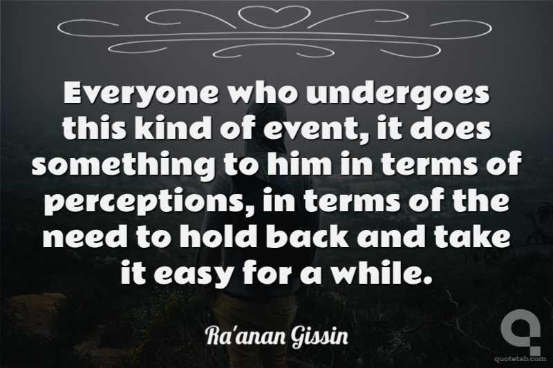Everyone who undergoes this kind of event, it does something to him in terms of perceptions, in terms of the need to hold back and take it easy for a while.