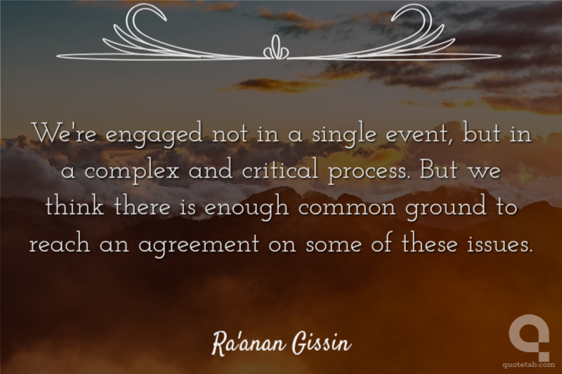 We're engaged not in a single event, but in a complex and critical process. But we think there is enough common ground to reach an agreement on some of these issues.