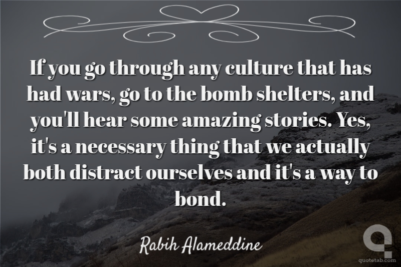 If you go through any culture that has had wars, go to the bomb shelters, and you'll hear some amazing stories. Yes, it's a necessary thing that we actually both distract ourselves and it's a way to bond.