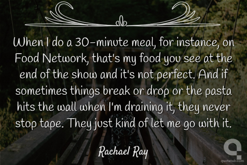 When I do a 30-minute meal, for instance, on Food Network, that's my food you see at the end of the show and it's not perfect. And if sometimes things break or drop or the pasta hits the wall when I'm draining it, they never stop tape. They just kind of let me go with it.