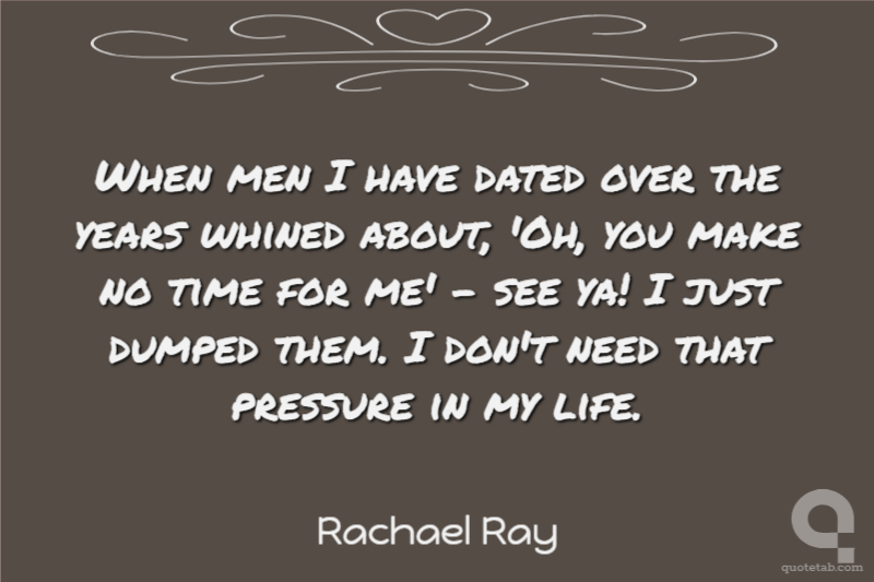 When men I have dated over the years whined about, 'Oh, you make no time for me' - see ya! I just dumped them. I don't need that pressure in my life.