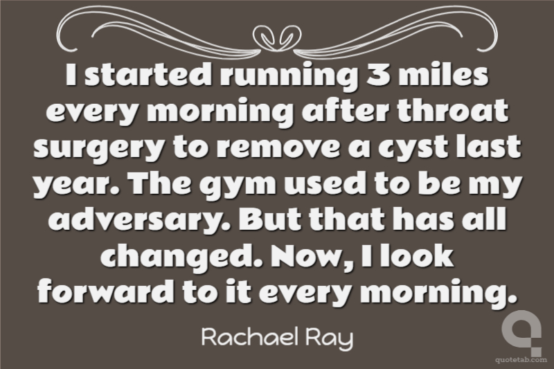I started running 3 miles every morning after throat surgery to remove a cyst last year. The gym used to be my adversary. But that has all changed. Now, I look forward to it every morning.