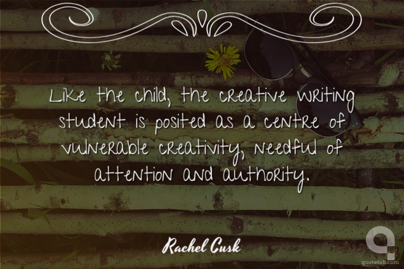 Like the child, the creative writing student is posited as a centre of vulnerable creativity, needful of attention and authority.