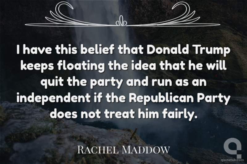 I have this belief that Donald Trump keeps floating the idea that he will quit the party and run as an independent if the Republican Party does not treat him fairly.