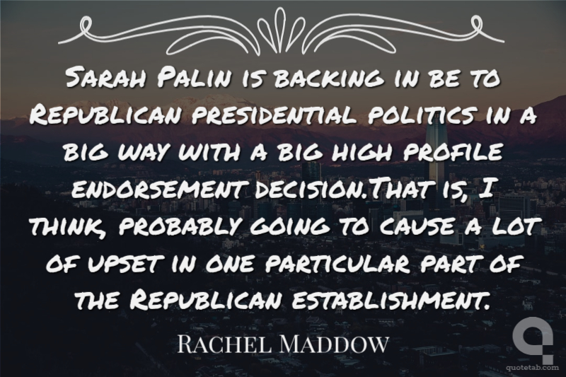 Sarah Palin is backing in be to Republican presidential politics in a big way with a big high profile endorsement decision.That is, I think, probably going to cause a lot of upset in one particular part of the Republican establishment.
