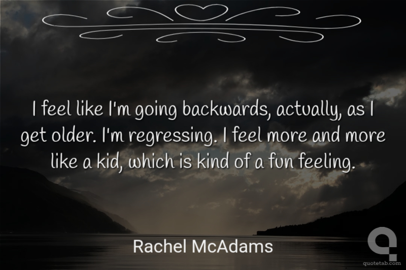 I feel like I'm going backwards, actually, as I get older. I'm regressing. I feel more and more like a kid, which is kind of a fun feeling.