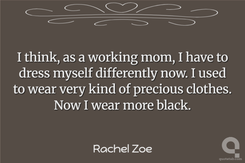 I think, as a working mom, I have to dress myself differently now. I used to wear very kind of precious clothes. Now I wear more black.