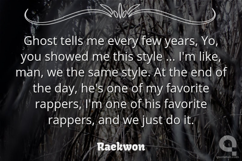 Ghost tells me every few years, Yo, you showed me this style ... I'm like, man, we the same style. At the end of the day, he's one of my favorite rappers, I'm one of his favorite rappers, and we just do it.