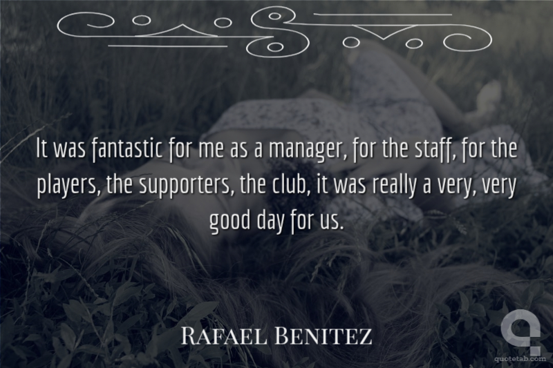 It was fantastic for me as a manager, for the staff, for the players, the supporters, the club, it was really a very, very good day for us.
